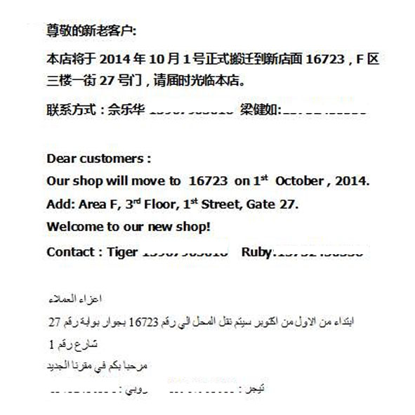 Good news: The new store Yiwu GroupTiger Hardware Co. 16723, in the October 1, 2014 opening. Thank you for the blessing.