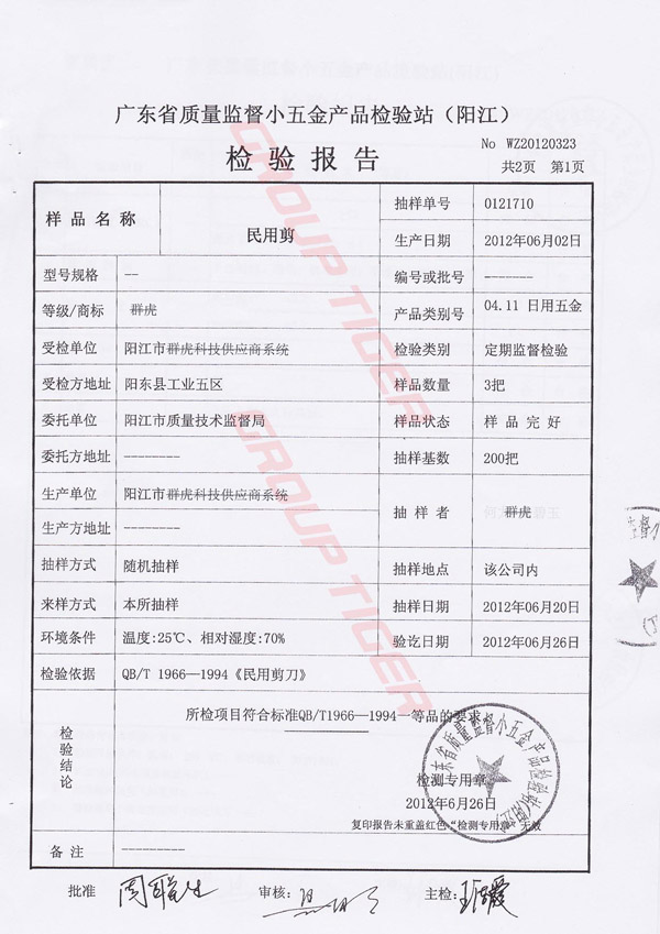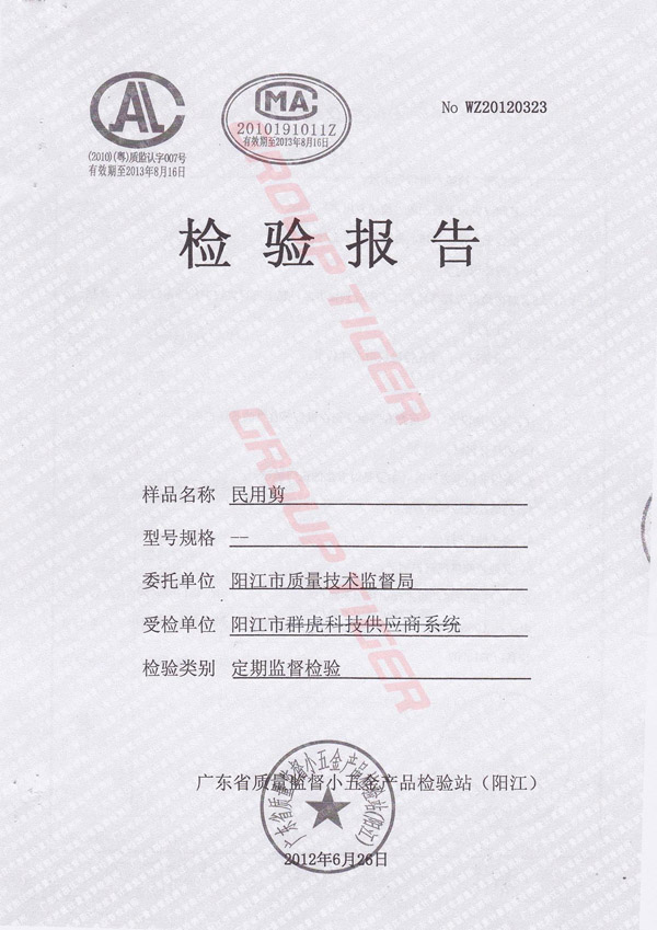 Scissors test report. P1-P4